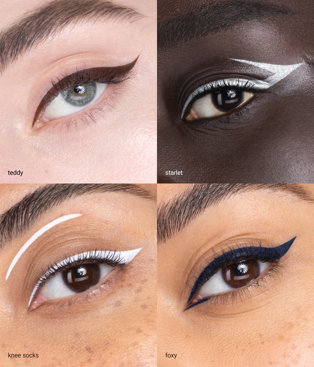 melhore sua arte com nossos quatro tons de marcadores delineadores combinados com nosso lenço de edição limitada na borda e rolo de delineador. um conjunto versátil para criar looks de delineador do clássico ao ousado. esses delineadores veganos + sem crueldade são à prova d'água, de longa duração, com precisão incomparável para aplicação perfeita de um único golpe e conforto durante todo o dia.