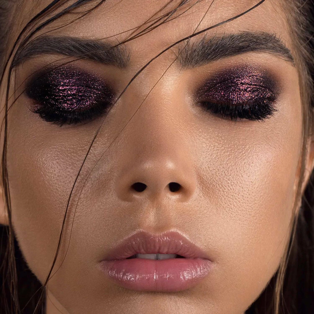 Com uma fórmula líquida brilhante para um uso sem vincos e com alto brilho, a SOMBRA LÍQUIDA CHROMA CRYSTAL fixa no lugar com um acabamento iridescente e cintilante que resiste a vincos, manchas e descamação.