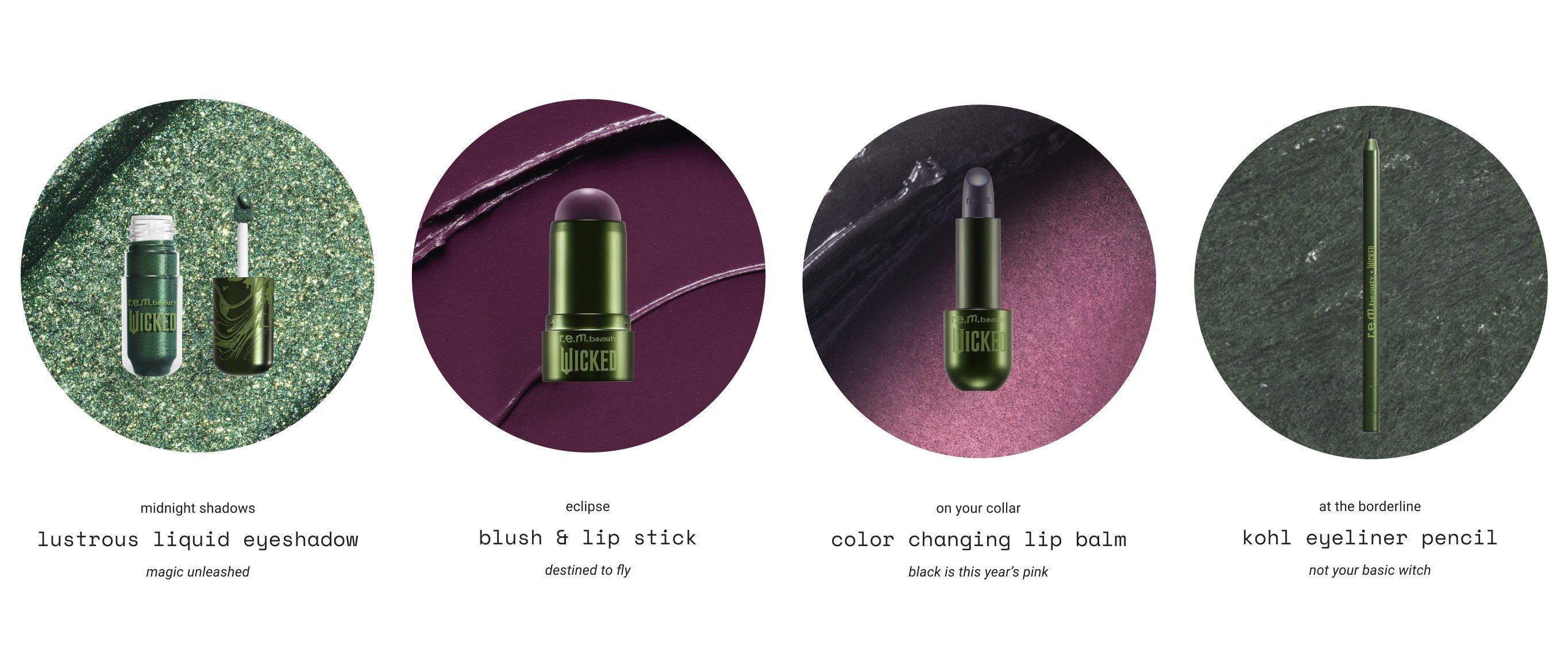 nosso conjunto de maquiagem rem beauty x wicked elphaba oferece tudo o que você precisa para criar um visual de rosto inteiro inspirado em sua magia e