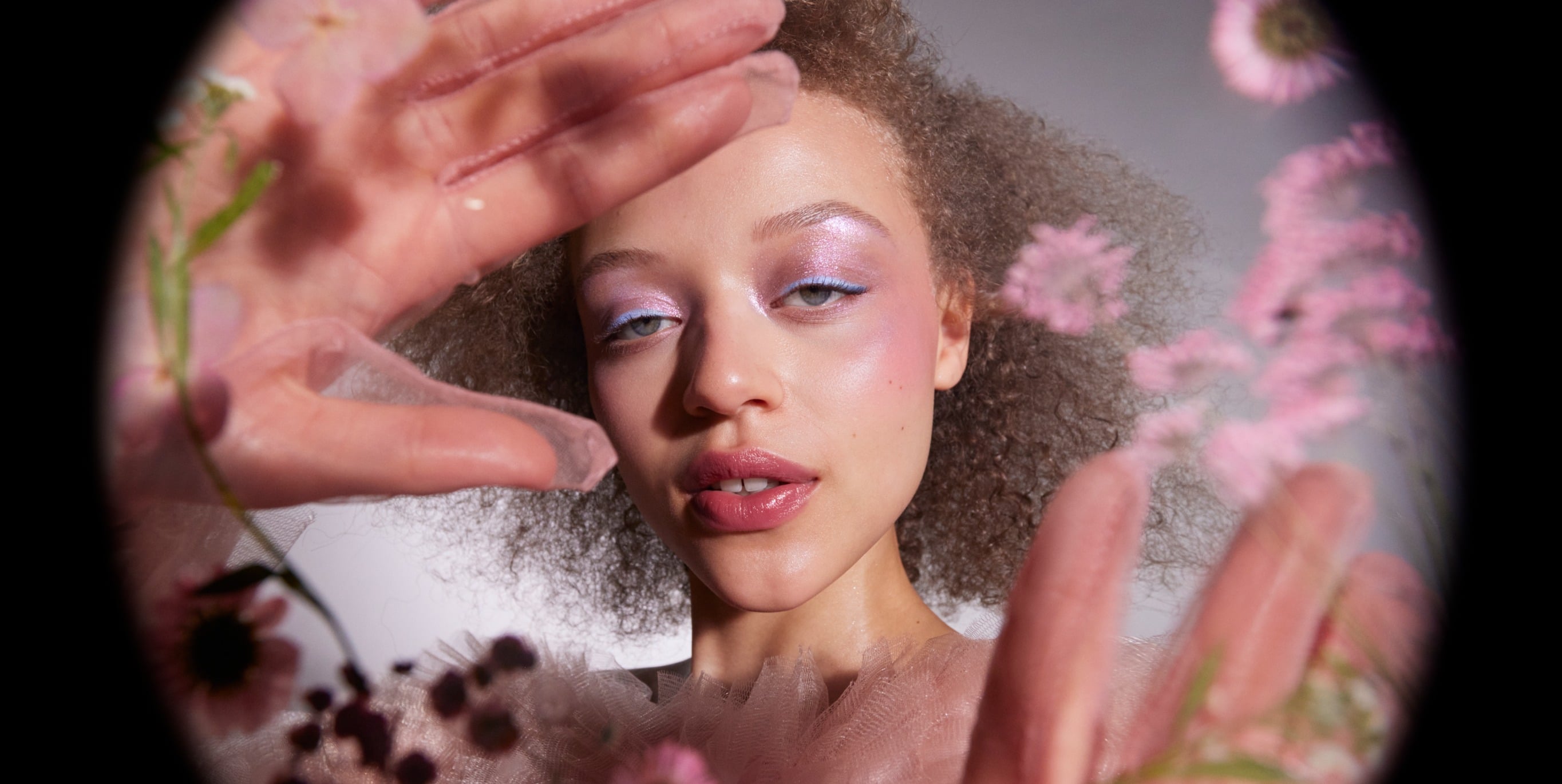 um conjunto de maquiagem lindamente borbulhante, incluindo sombra líquida, blush e batom, delineador e batom inspirado nos melhores looks de Galinda.