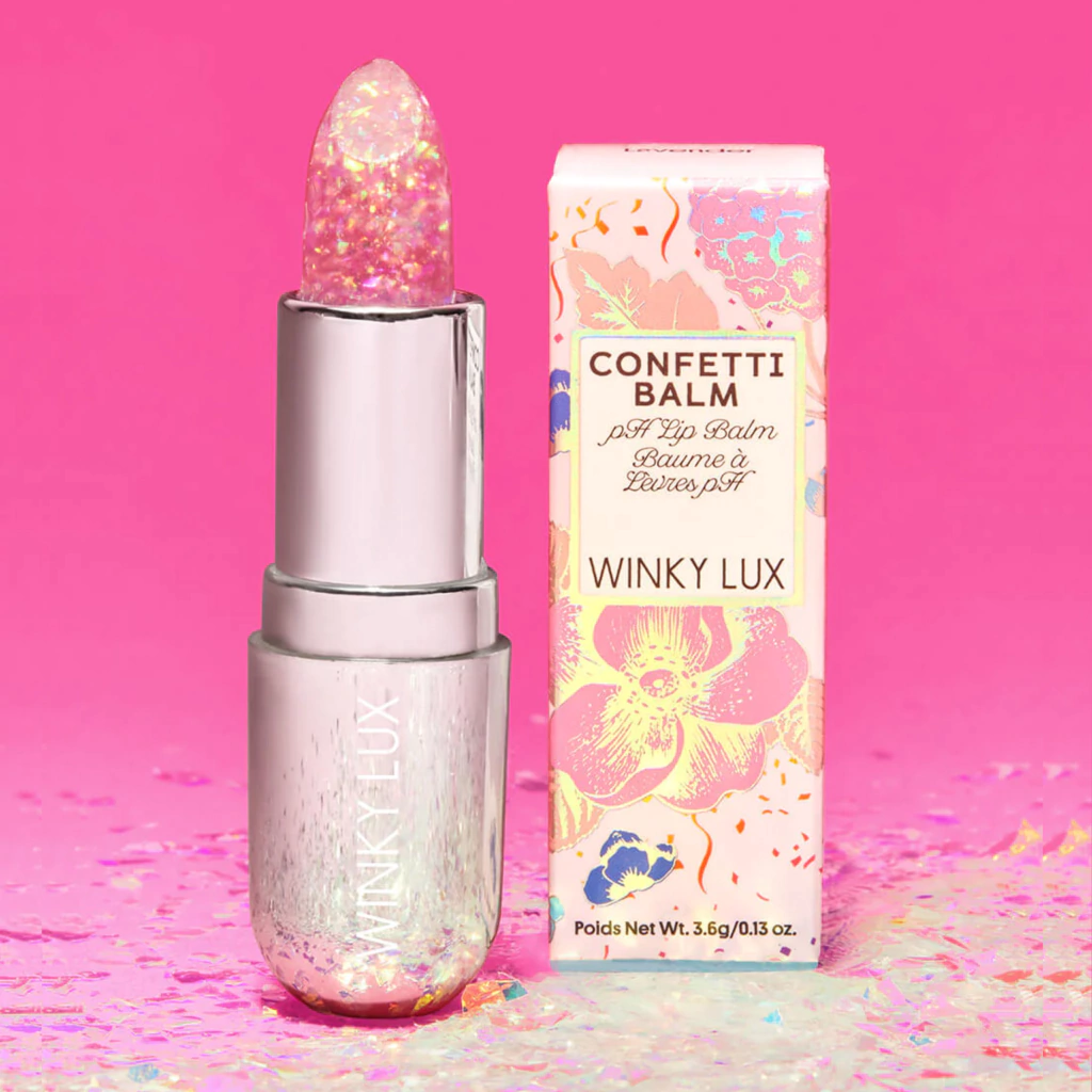 Confetti Lip Balm é uma festa para seus lábios. Com ingredientes ativados por pH, nosso Confetti Lip Balm que realça a cor é uma mancha labial vegana que se aplica transparente e reage com os níveis naturais de pH dos lábios para criar um rosa perfeitamente personalizado com um brilho cintilante. Passe para lábios que se destacam do brunch ao afterparty.