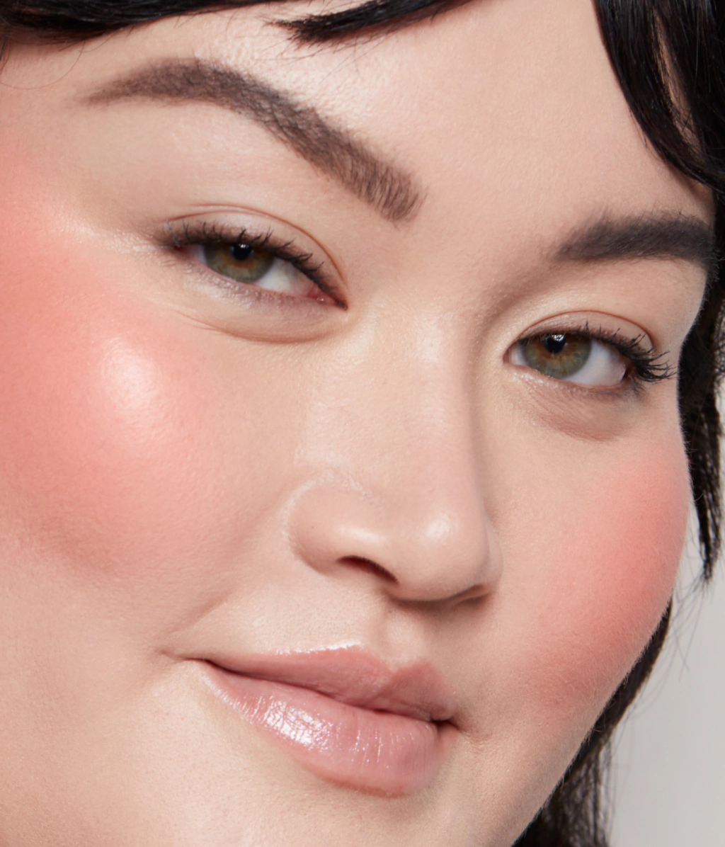 um blush leve que infunde na pele pigmentos vibrantes de uma só passagem para um acabamento de foco suave lindamente desfocado .