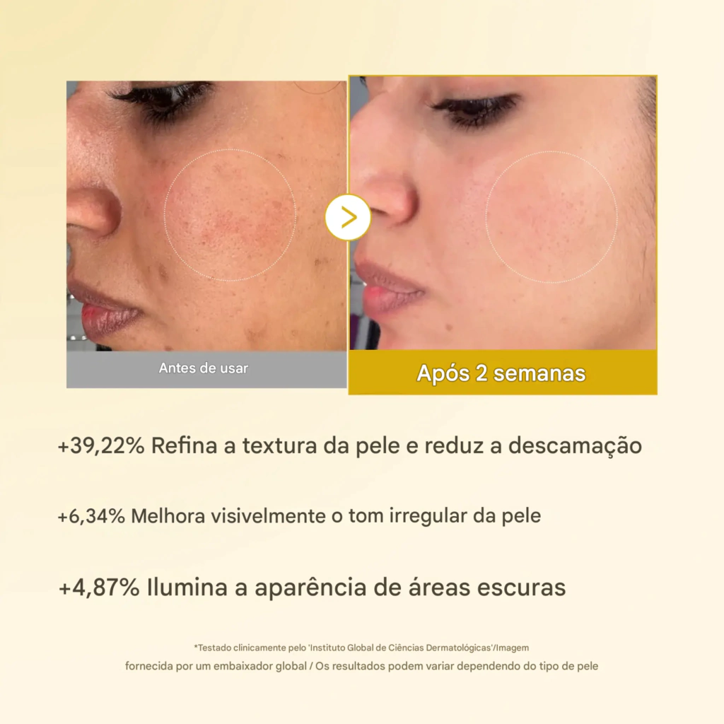 Refina a textura da pele e reduz a descamação da pele 52,62%
