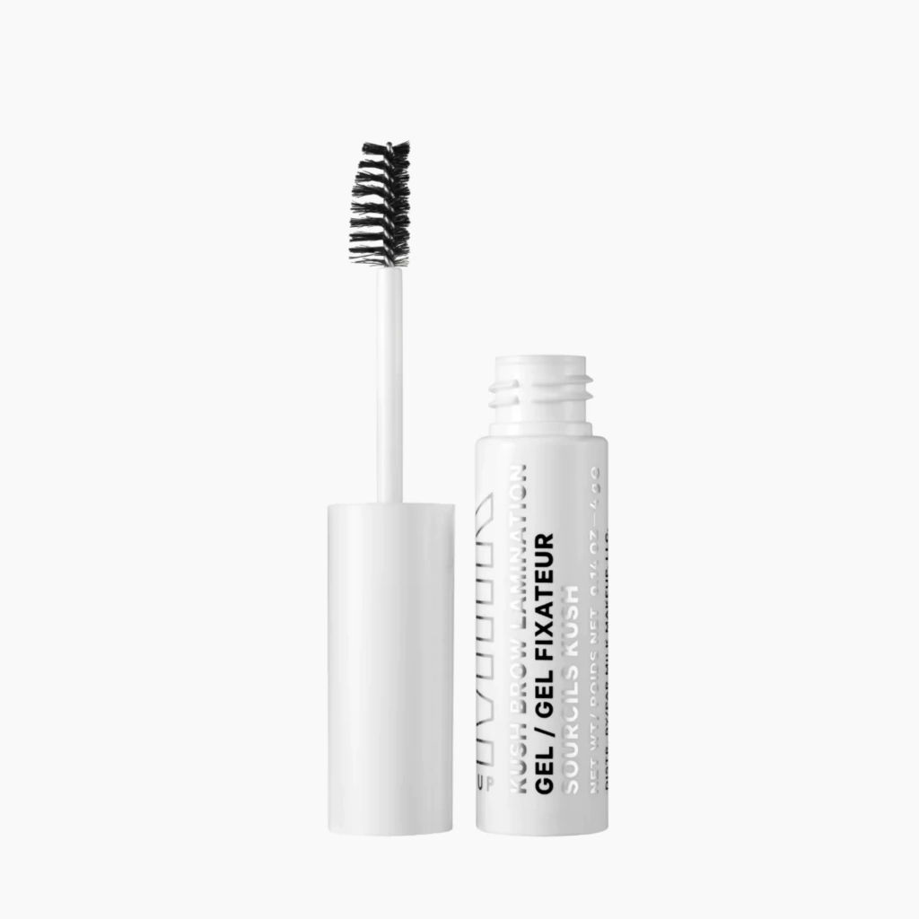 Um gel transparente para laminação de sobrancelhas que levanta, modela e define as sobrancelhas para um efeito laminado escovado por até 8 horas.