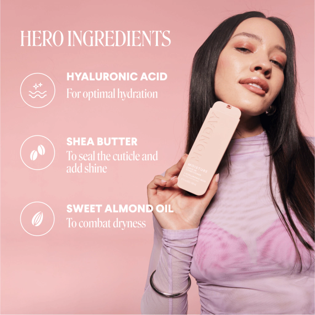 O condicionador MOISTURE Leave-In da MONDAY Haircare é multitarefa que promove cabelos mais longos e saudáveis, hidratando profundamente, além de proteger do calor e da quebra. Com Ácido Hialurônico para otimizar os níveis de hidratação, além de Manteiga de Karité, Proteína de Trigo e Óleos de Jojoba e Amêndoa, o cabelo fica macio, brilhante e sem frizz.