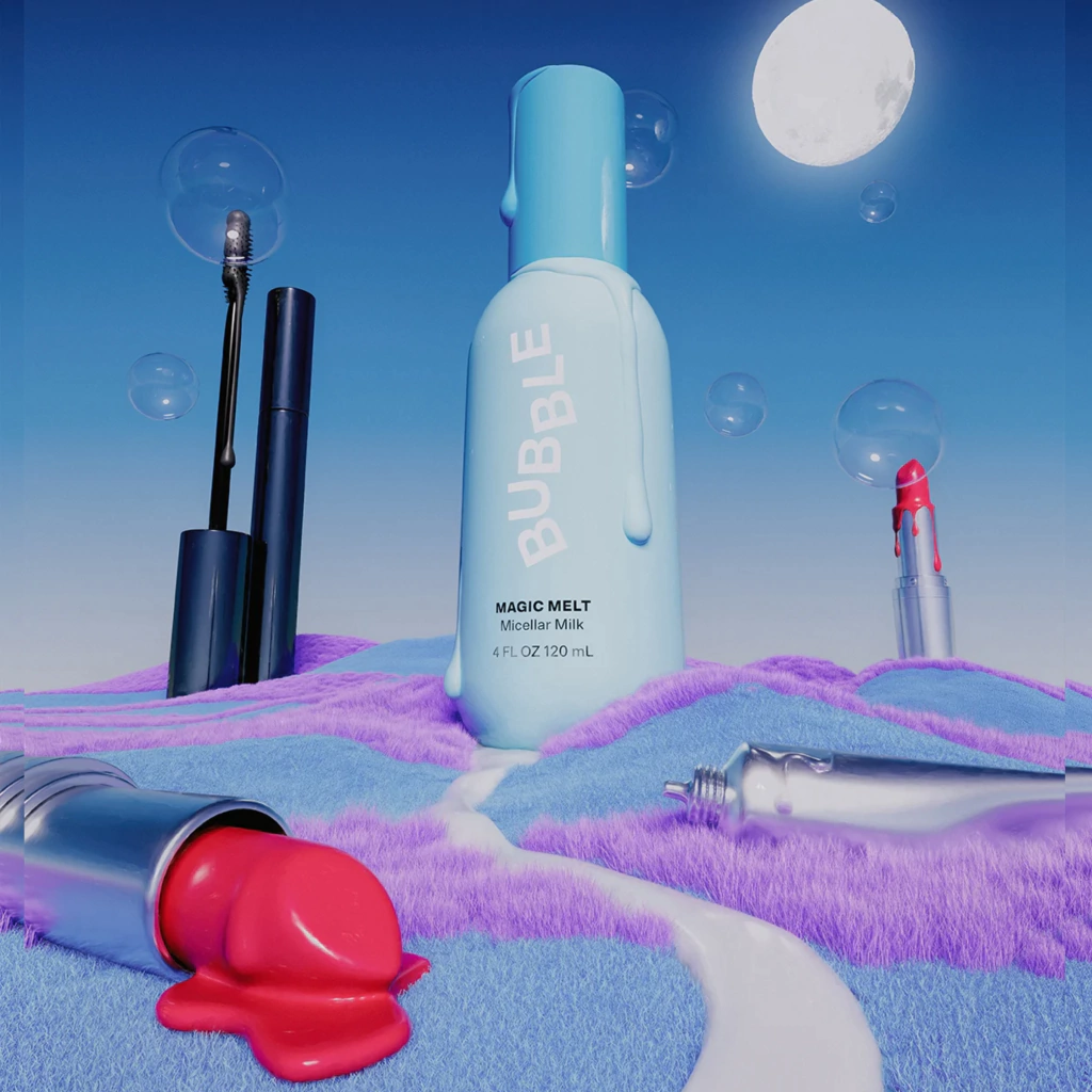 Derreta o dia! O Magic Melt Micellar Milk da Bubble remove suavemente e sem esforço a maquiagem, a oleosidade e o FPS para revelar uma pele suavizada e nutrida. A textura suave e leitosa do Magic Melt é feita para rostos secos e sensíveis, e é facilmente removida com um pano ou discos de maquiagem reutilizáveis. Use o Magic Melt sozinho ou como o primeiro passo de uma limpeza dupla (ou tripla).