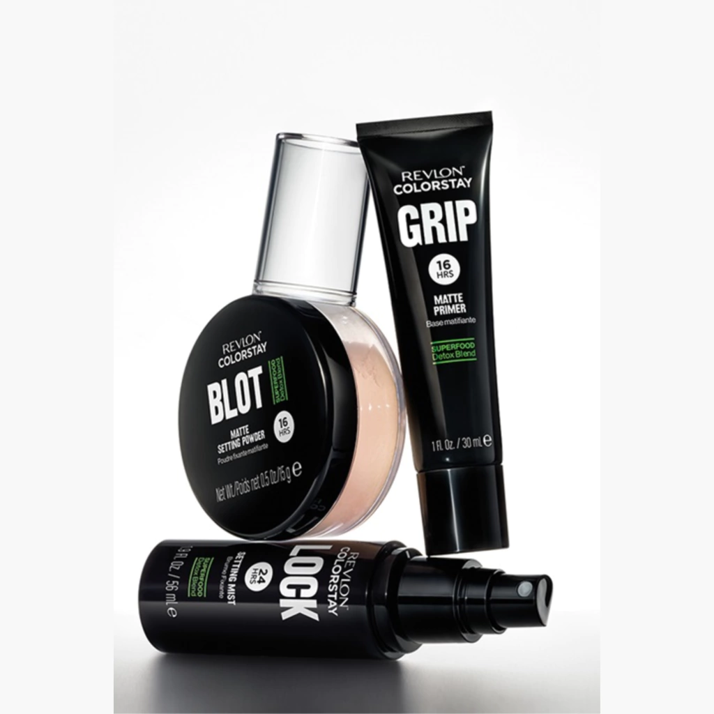Um pó de fixação com poder de borrão! O Revlon ColorStay™ Blot Setting Powder é um pó matificante fundido com uma mistura de proteção que fornece um efeito mate ininterrupto por até 16 horas. A ação tripla potência matifica, absorve a oleosidade e reduz a aparência dos poros enquanto controla o brilho o dia todo. A fórmula sedosa e macia cria um acabamento fosco impecável que não deixa um filme calcário em sua pele, além de nenhum flashback de foto. Infundido com uma SUPERALIMENTO DETOX BLEND de Citrus + Aloe + Brócolis que protege a pele contra os efeitos dos agressores diários, incluindo estresse ambiental e poluição, neutralizando os radicais livres. Ideal para todos os tons de pele, a fórmula não-cakey é livre de parabenos, ftalatos e óleo mineral adicionados.