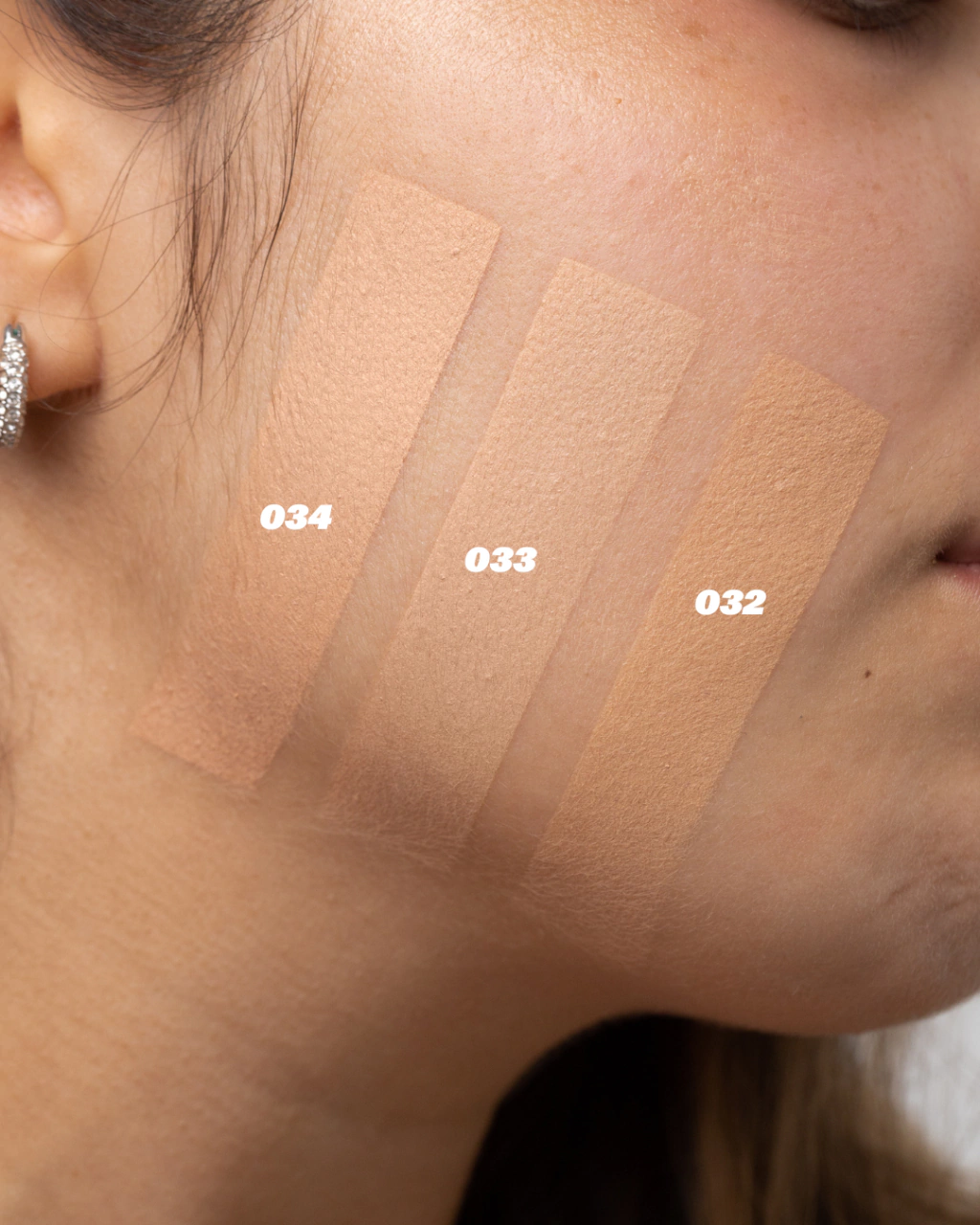 Aplique com os dedos, pincel de base ou esponja de beleza úmida para misturar na pele. Para cobertura adicional, adicione mais base nas áreas desejadas.