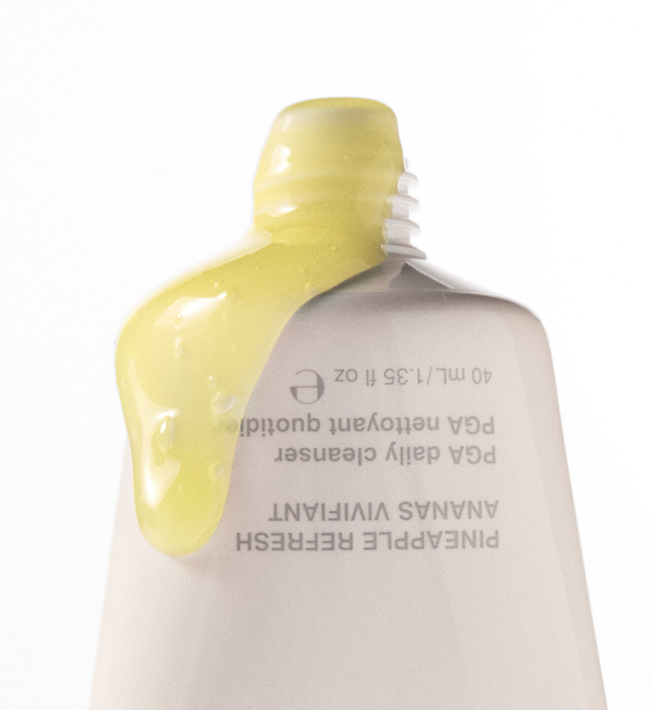 O limpador diário suave. Nosso bálsamo de limpeza PGA, que faz espuma, esfolia suavemente a pele para remover a maquiagem e o FPS ao final do dia. Deixa a pele limpa, macia e hidratada após o enxágue.