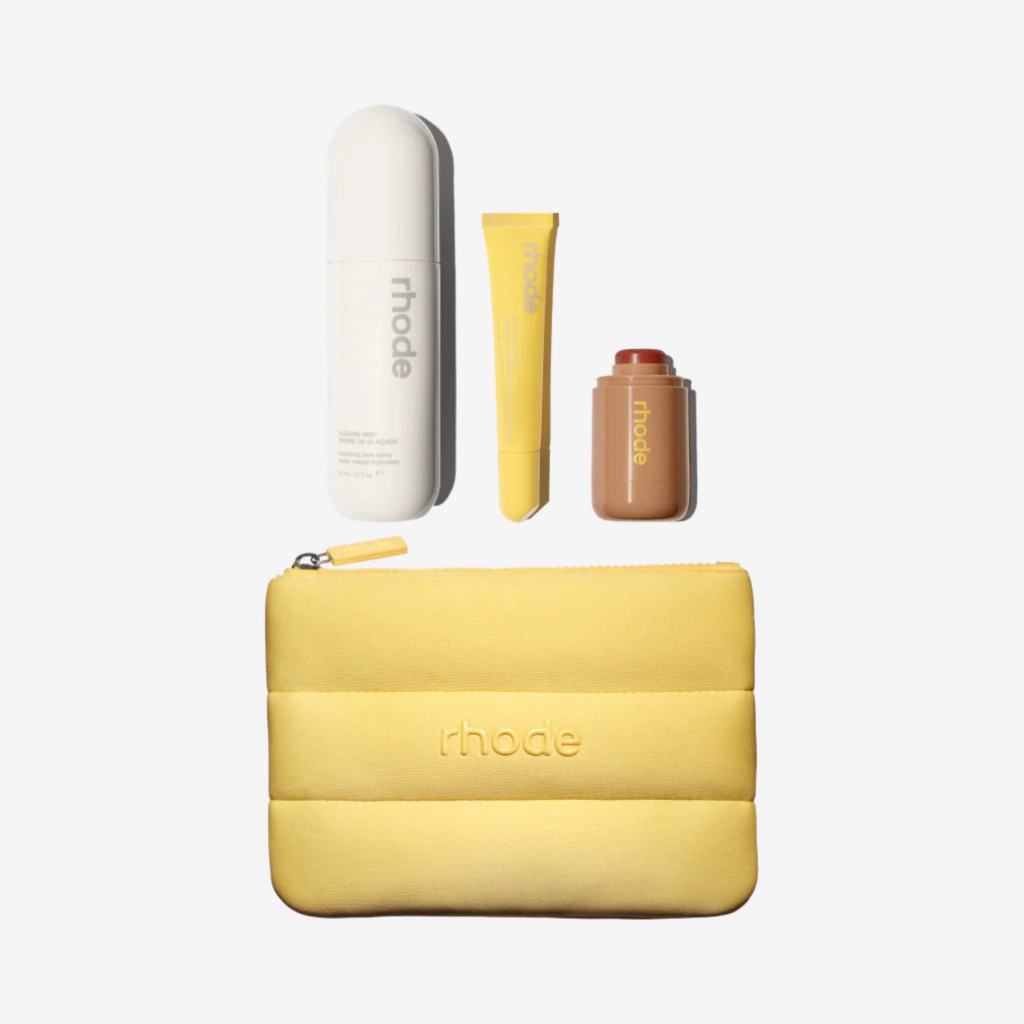 Pele radiante, bochechas coradas pelo sol e lábios dourados e brilhantes. Nosso kit de edição limitada reúne todos os seus itens essenciais em nossa bolsa bolha Baby Rhode. Perfeito para o glamour do clima quente e para preparar as malas para a sua escapada.