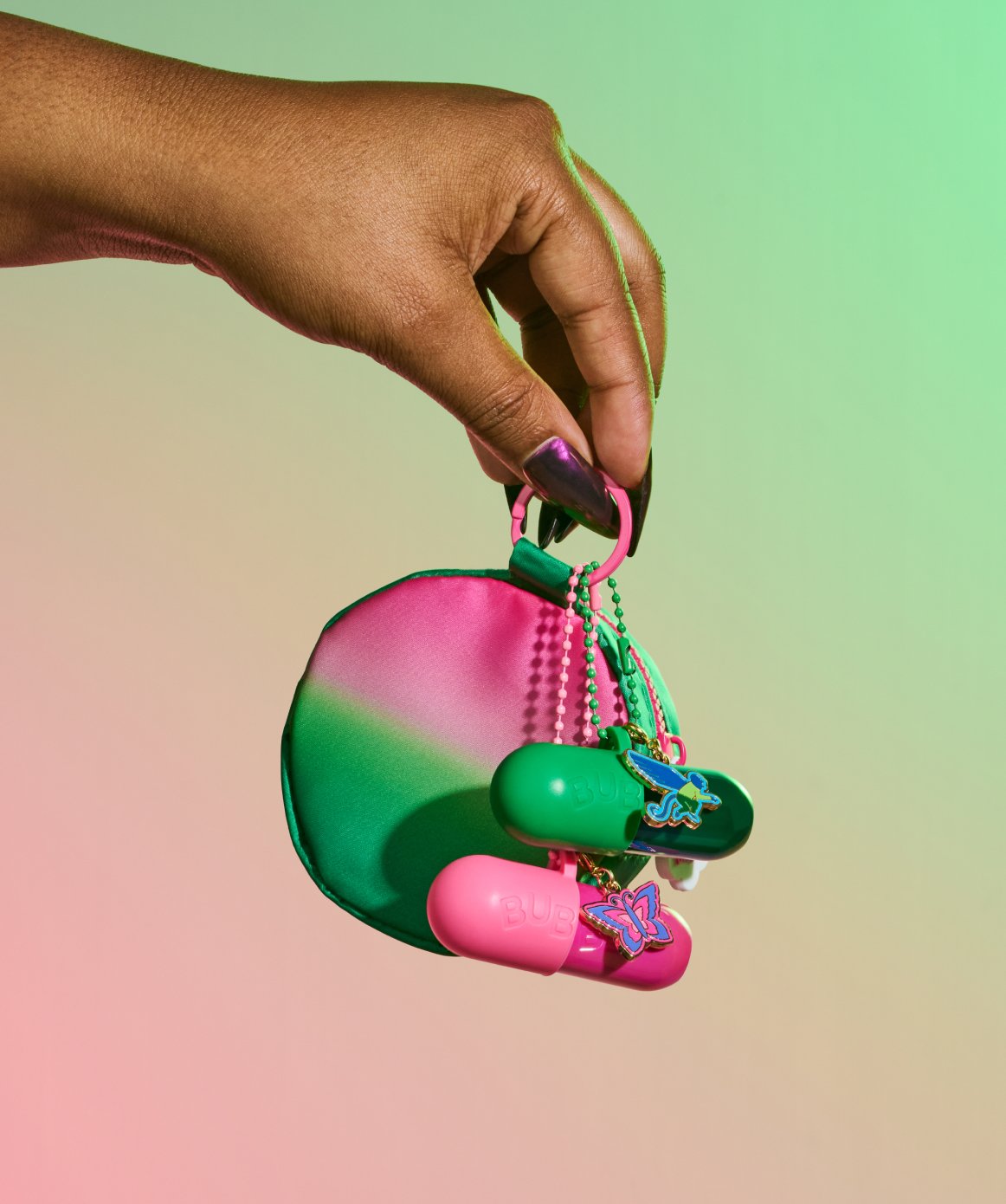 Encante seu rosto com o conjunto Other Half Lip Balm da Bubble x Wicked. Cada conjunto relaxante inclui dois protetores labiais de edição limitada nas cores Maçã Verde e Chiclete, além de dois charms exclusivos e uma bolsa com chaveiro combinando. © Universal City Studios LLC. Todos os direitos reservados.